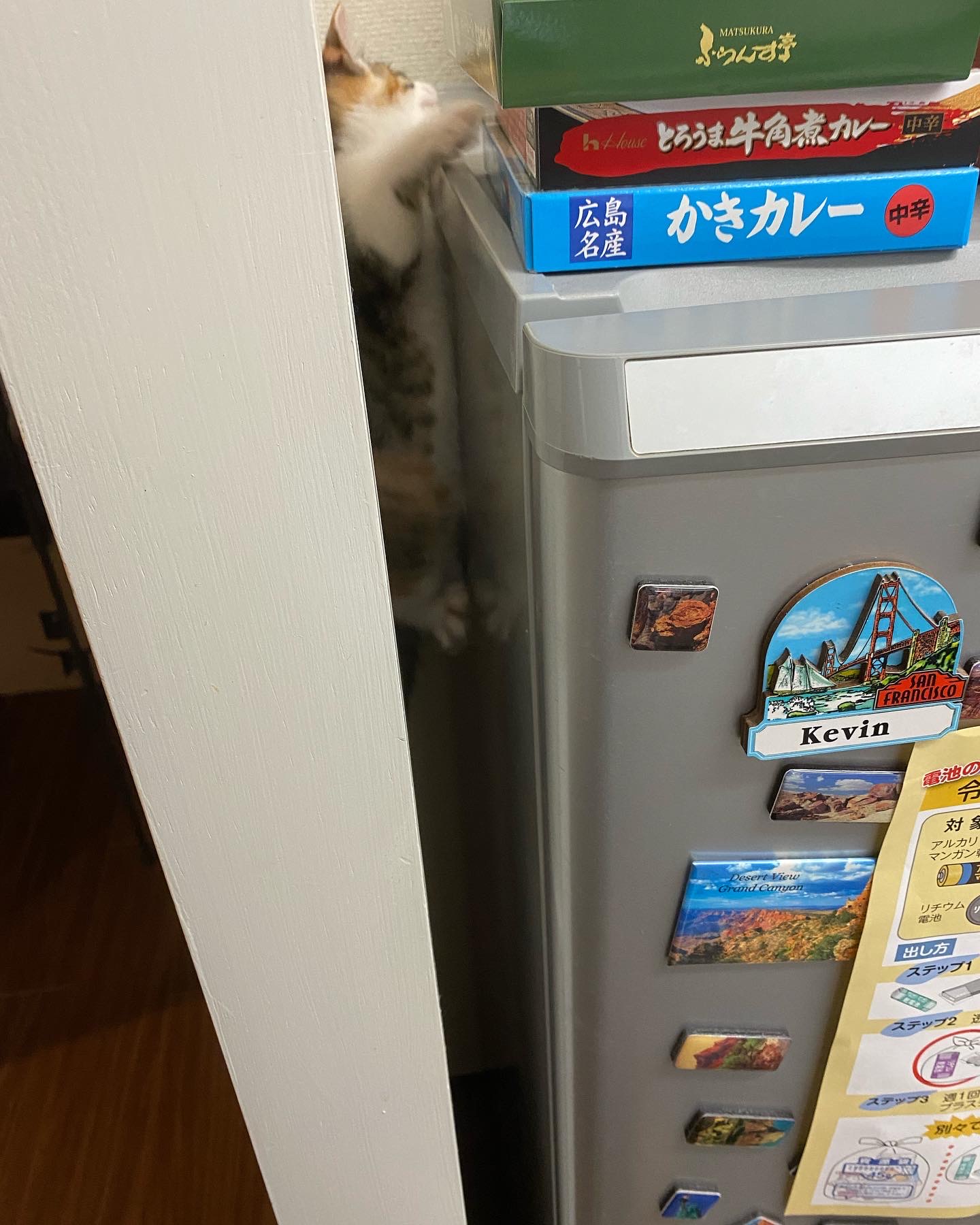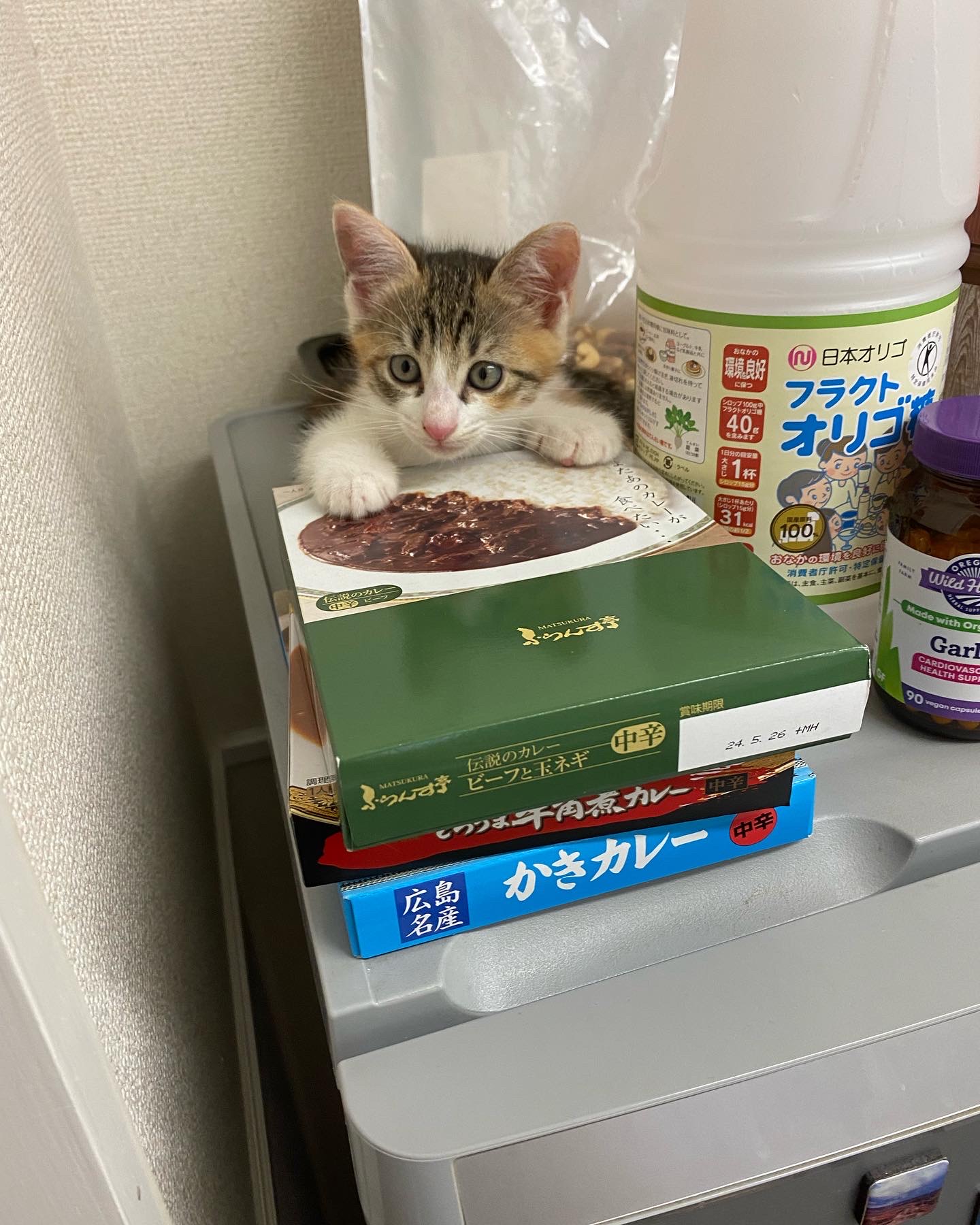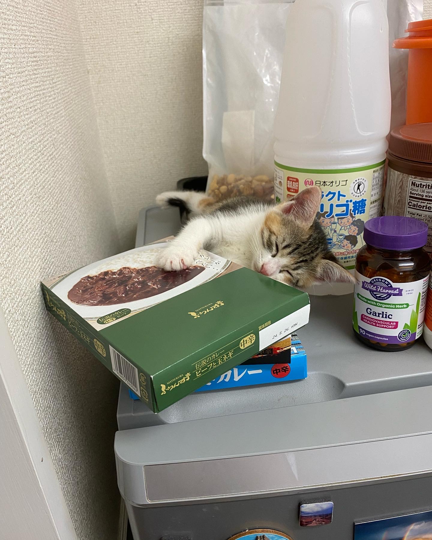 さて、当時は冷蔵庫の上にカレーの箱とかサプリとか、